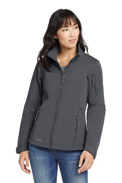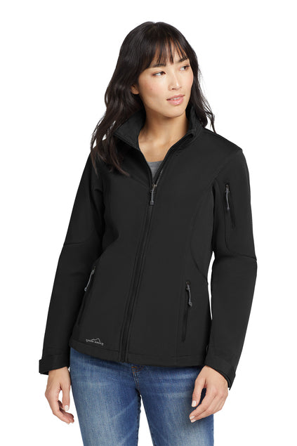 - Contrast heat transfer Eddie Bauer logo on right hem